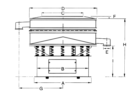 加緣型旋振篩基本原理系借電機軸上下端所安裝的重錘(不平蘅重錘),將電機的旋轉運動轉變為水平、垂直、傾斜的三次元運動,再把這個運動傳達給篩面。若改變上下部的重錘的相位角可改變原料的行進方向